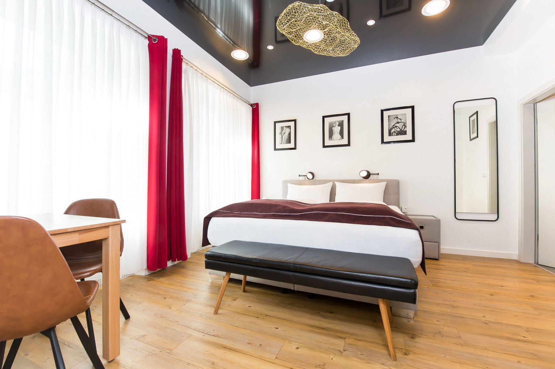 Großzügiges Apartment (Zimmergröße bis 28 m²), mit einem Tisch mit Sitzgelegenheit, Radio. Alle Zimmer verfügen über LCD-TV und kostenlosen Internetzugang (Highspeed-WLAN), Klimageräten ,DU/WC, teilweise Küchenzeile /Badewanne, Föhn, Handtücher, Duschgel/Shampoo und Nespresso Maschine.